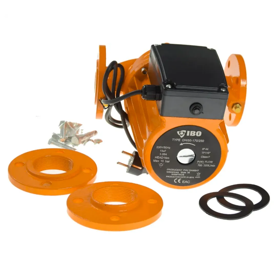 С комплектацией ответными фланцами и возможностью фланцевого подключения, этот насос обеспечивает простоту установки и надежное соединение в системе отопления. Циркуляционный насос IBO OHI 50-170/250 становится незаменимым элементом в больших системах отопления, обеспечивая эффективную циркуляцию теплоносителя и оптимальную температуру в помещениях.