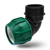 Колено компрессионное (угол) Poelsan 20 x ¾" с наружной резьбой