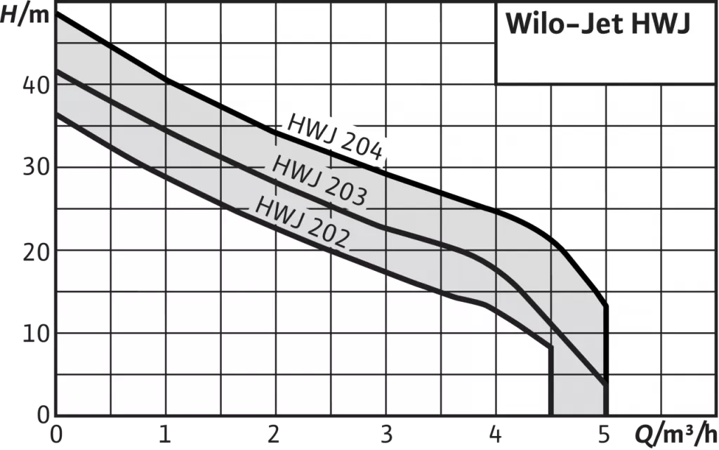 Насосная станция WILO HWJ-204-EM - установка с центробежным насосом в компактном исполнении с горизонтальным всасывающим и вертикальным напорным патрубком, которая состоит из следующих компонентов: Самовсасывающий одноступенчатый струйный насос со сквозным насосным валом электродвигателя и не зависящим от направления вращения скользящим торцовым уплотнением. Напрямую присоединенный фланцами однофазный или трехфазный электродвигатель со встроенным термическим защитным выключателем и конденсатором в исполнении для однофазного тока. Система управления насосом с управляющим агрегатом и мембранным напорным баком, манометрическим выключателем и манометром (0–6 бар). Все детали, находящиеся в контакте с перекачиваемой средой, не подвержены коррозии.