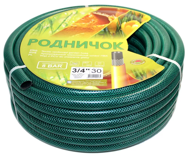 Шланг ПВХ поливочный армированный Родничок 3/4" 20м (зеленый)