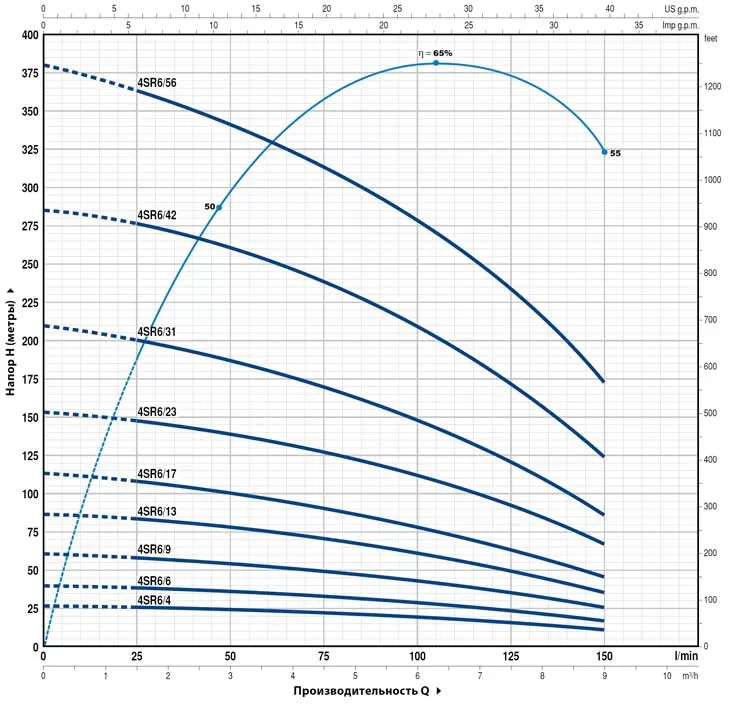 Глубинный насос Pedrollo 4SR6/9-P, отличается объективной ценой и надежной работой всех исполнительных механизмов. Насос Pedrollo 4SR6/9-P достаточно простой в эксплуатации и обслуживании, поэтому отлично подходит как для домашнего, так и промышленного применения.В основе работы Pedrollo 4SR6/9-P лежит конструктивно простой, но функционально успешный многоступенчатый центробежный принцип. Электрический двигатель подключается к агрегату через суппорт, в соответствии с нормативами международного стандарта NEMA. Мощность электродвигателя насоса составляет 1100 Вт . И при таких показателях мощности насос обладает максимальным напором в 61 метров и максимальной производительностью 9 м3/час. Функционирование Pedrollo 4SR6/9-P идентично большинству устройств, основанных на центробежных механизмах подачи воды. Жидкость втягивается в корпус устройства благодаря центробежной силе, создаваемой рабочими колесами, которые также проталкивают воду через все тело насоса "диаметр насоса 4"", а затем в нагнетающий патрубок "диаметр патрубка 2"", через который вода и попадает к конечному потребителю. Главной особенностью насоса Pedrollo 4SR6/9-P является малый диаметр корпуса агрегата, а также то, что перекачиваемая вода не касается стенок двигателя. Между жидкостью и корпусом движущей установки располагается прослойка из технологического масла, которая и предотвращает попадание мелких частиц непосредственно в исполнительный механизм. В то время как охлаждение электропривода происходит за счет верхнего способа забора воды, т.е. перекачиваемая жидкость находится всегда выше уровня расположения двигателя. Насос питается от сети в 380 в и комплектуется кабелем 1.5 метров.