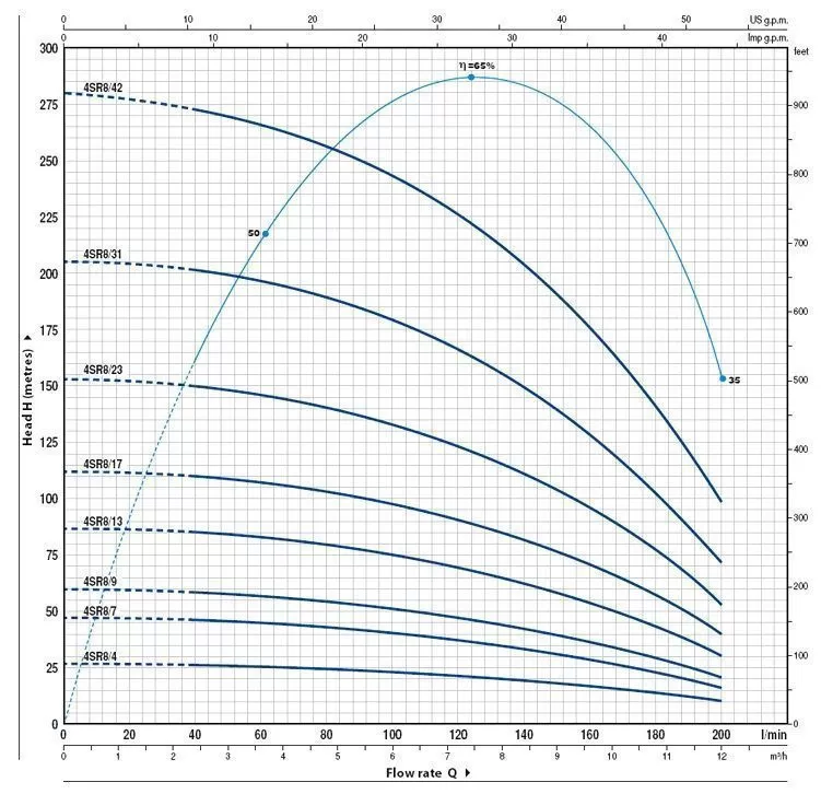 Глубинный насос Pedrollo 4SR8/23-P, отличается объективной ценой и надежной работой всех исполнительных механизмов. Насос Pedrollo 4SR8/23-P достаточно простой в эксплуатации и обслуживании, поэтому отлично подходит как для домашнего, так и промышленного применения.В основе работы Pedrollo 4SR8/23-P лежит конструктивно простой, но функционально успешный многоступенчатый центробежный принцип. Электрический двигатель подключается к агрегату через суппорт, в соответствии с нормативами международного стандарта NEMA. Мощность электродвигателя насоса составляет 4000 Вт . И при таких показателях мощности насос обладает максимальным напором в 153 метров и максимальной производительностью 12 м3/час. Функционирование Pedrollo 4SR8/23-P идентично большинству устройств, основанных на центробежных механизмах подачи воды. Жидкость втягивается в корпус устройства благодаря центробежной силе, создаваемой рабочими колесами, которые также проталкивают воду через все тело насоса "диаметр насоса 4"", а затем в нагнетающий патрубок "диаметр патрубка 2"", через который вода и попадает к конечному потребителю. Главной особенностью насоса Pedrollo 4SR8/23-P является малый диаметр корпуса агрегата, а также то, что перекачиваемая вода не касается стенок двигателя. Между жидкостью и корпусом движущей установки располагается прослойка из технологического масла, которая и предотвращает попадание мелких частиц непосредственно в исполнительный механизм. В то время как охлаждение электропривода происходит за счет верхнего способа забора воды, т.е. перекачиваемая жидкость находится всегда выше уровня расположения двигателя. Насос питается от сети в 380 в и комплектуется кабелем 1.5 метров.
