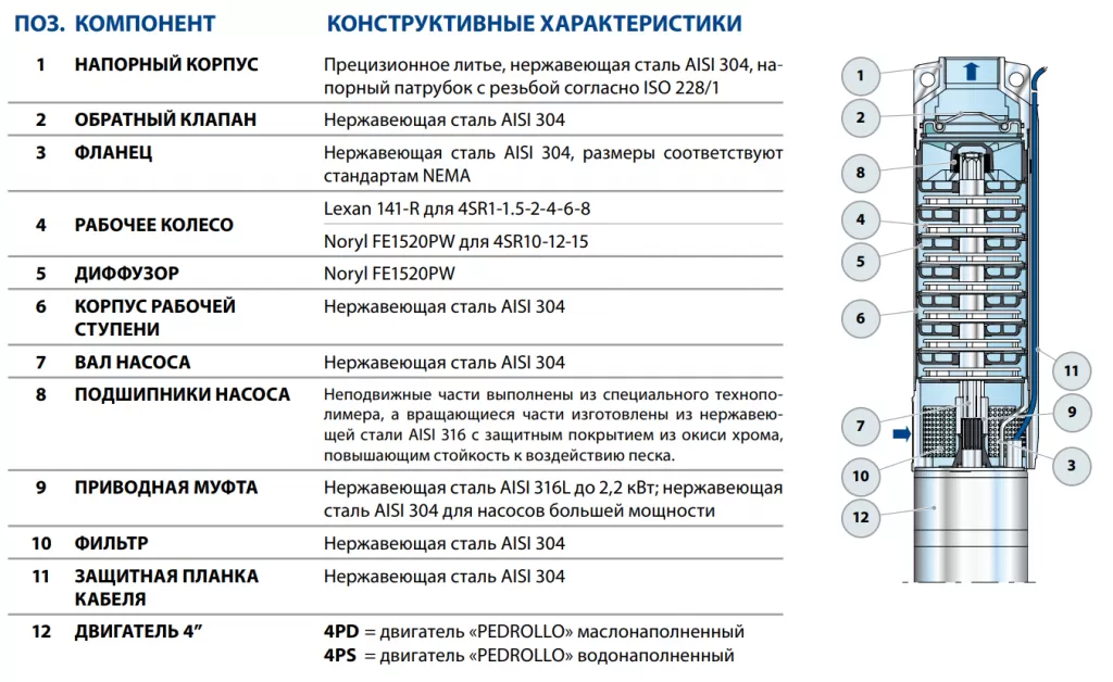 - Двигатель — 4PD = двигатель «PEDROLLO» маслонаполненный PS = двигатель «PEDROLLO» водонаполненный