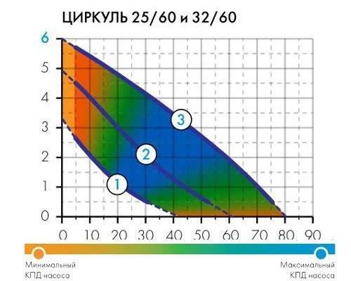 Графические характеристики насоса ДЖИЛЕКС ЦИРКУЛЬ 25/60