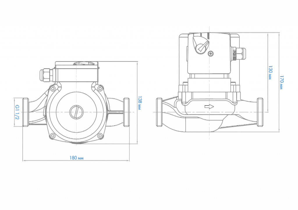 - Установочный размер между присоединительными фланцами — 180 мм.