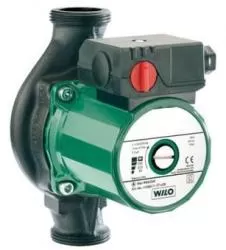 Циркуляционный насос WILO STAR-STG 25/6 с мокрым ротором для установки в трубах с ручной трехступенчатой регулировкой частоты вращения. С устойчивым к токам блокировки электродвигателем. Корпус насоса из серого чугуна (в зависимости от типа может применяться бронза), рабочее колесо из упрочненного стекловолокном синтетического материала, вал из нержавеющей стали с угольными подшипниками скольжения с металлической пропиткой.